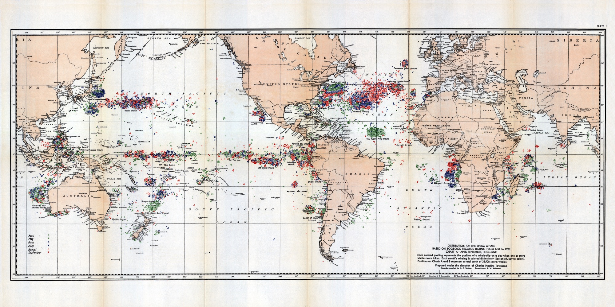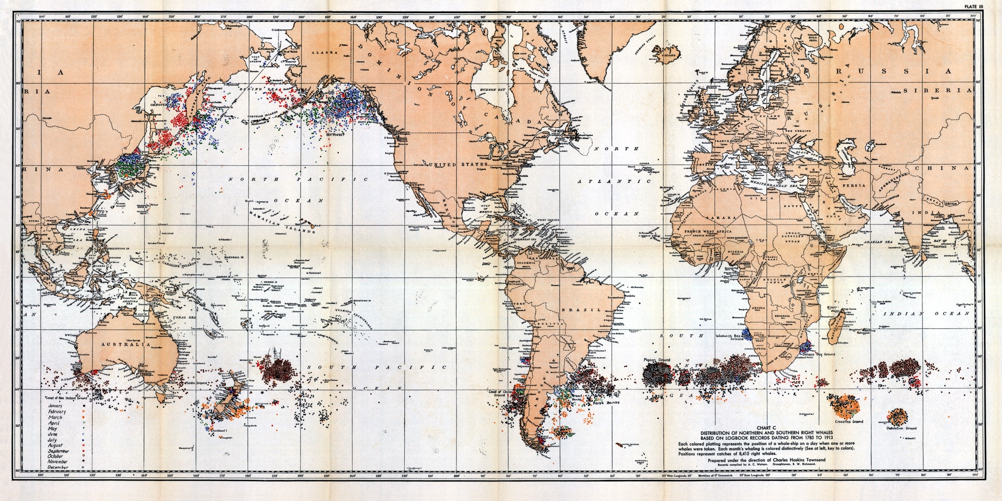 From Townsend CH (1935) The distribution of certain whales as shown by logbook records of American whaleships. 19. Zoologica (NY): : 1–50+6 Charts.